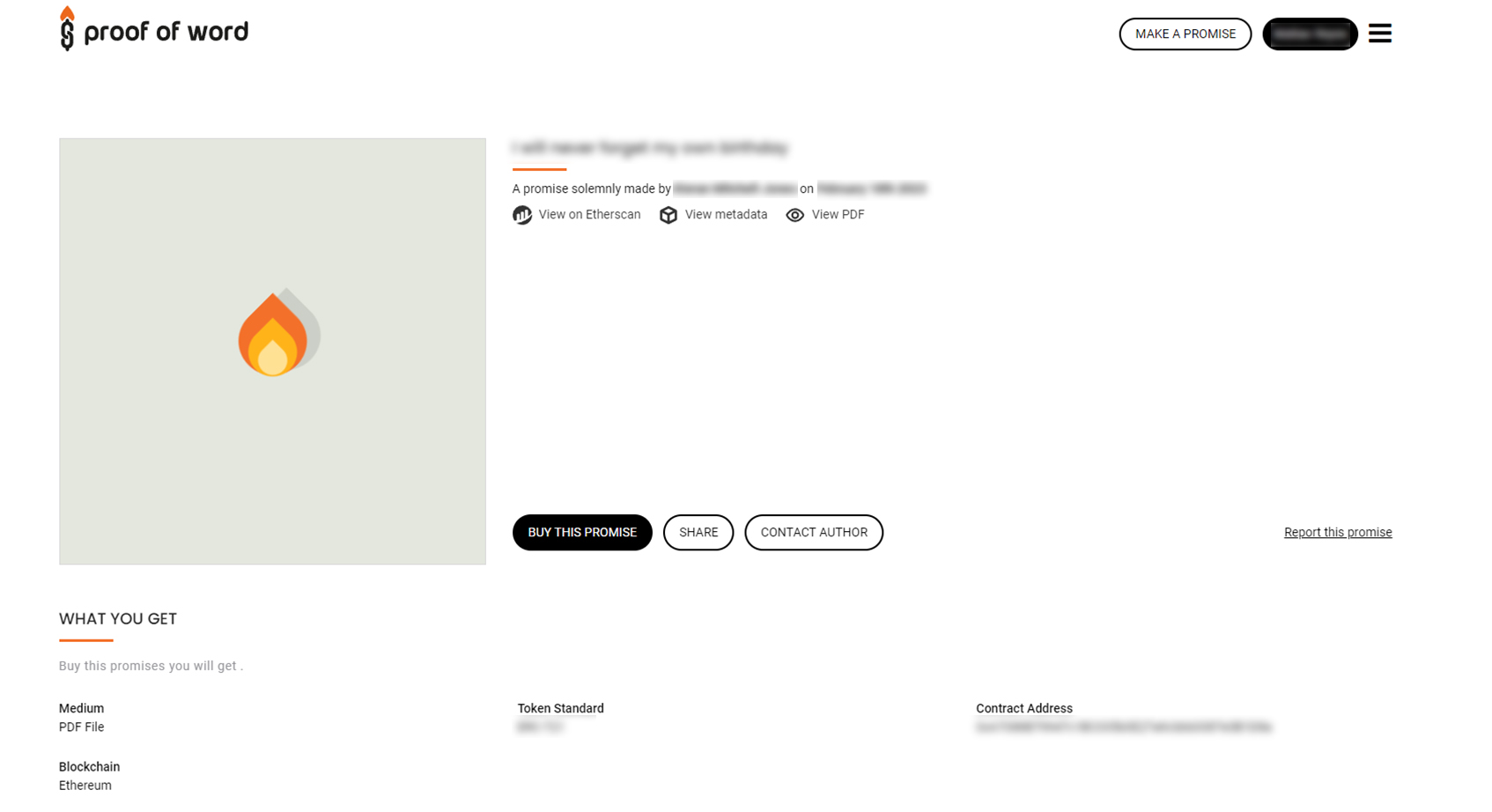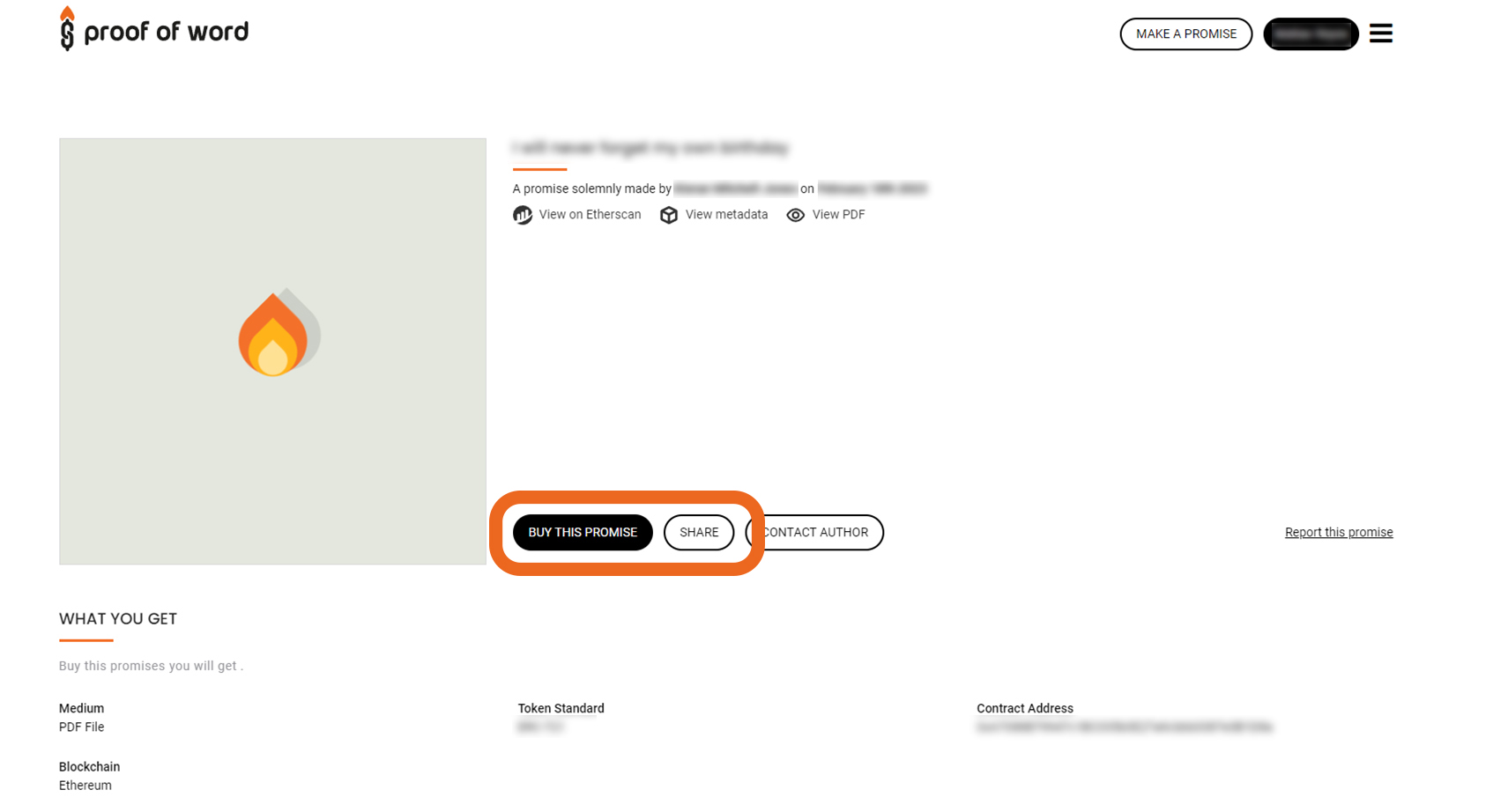 From your promise page you will be able to share it online and to make it purchasable by others at a price of your choosing, likewise you will be able to purchase other people’s promises from the promises’ page.